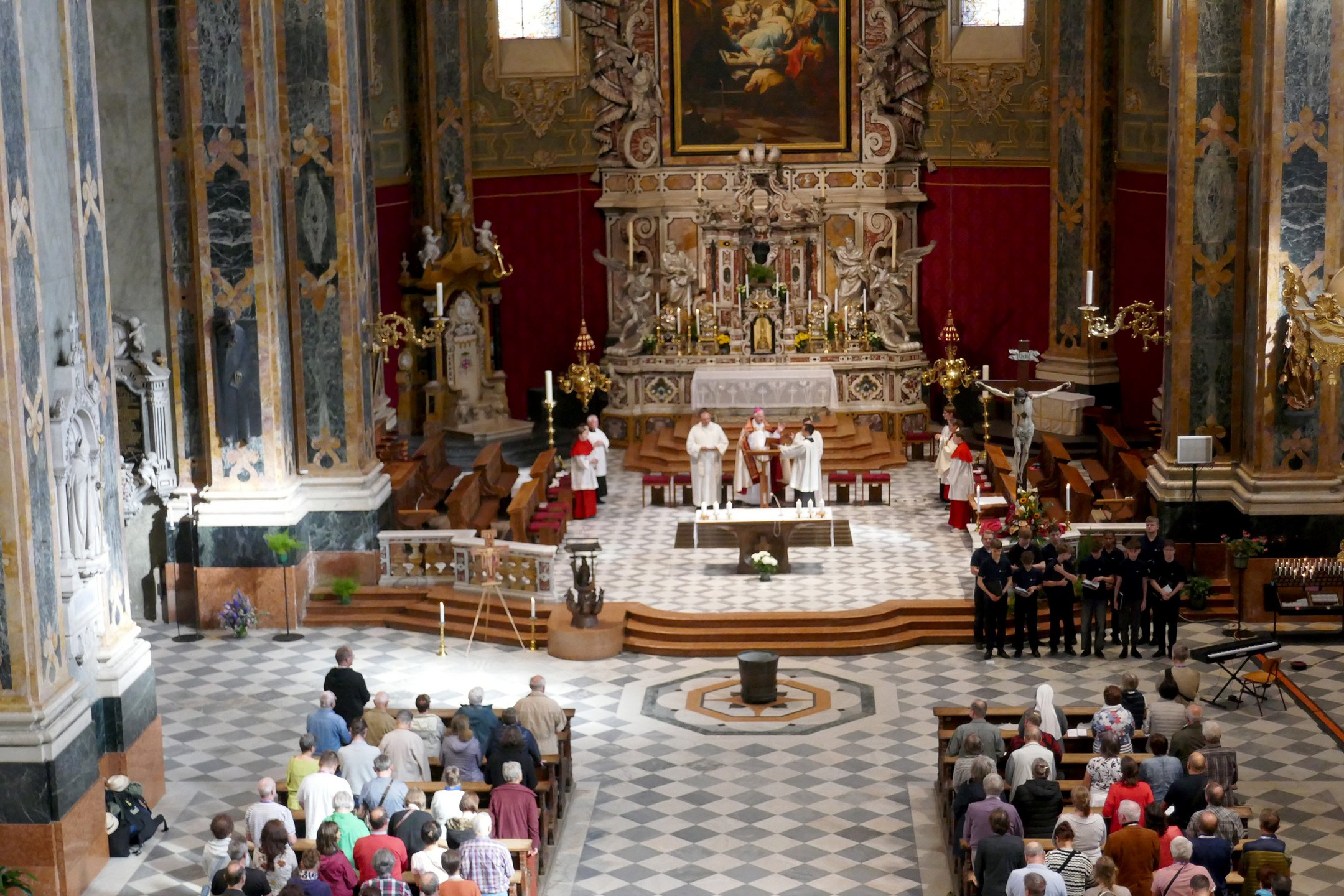 Nach der langen Anreise stellte die Eröffnungsandacht im Brixner Dom, der Bischof Heinrich Timmerevers vorstand, einen ersten Moment der Ruhe und der Besinnung dar. Im Mittelpunkt der Andacht stand das Taufgedächtnis, das alle Pilgerinnen und Pilger an das Fundament des christlichen Glaubens und an die ständige Erneuerungsbereitschaft der Glaubenden erinnerte. Für die musikalische Gestaltung sorgte ein Auswahlchor der Dresdner Kapellknaben, der die Feier in eindrucksvoller Weise mitgestaltete.
